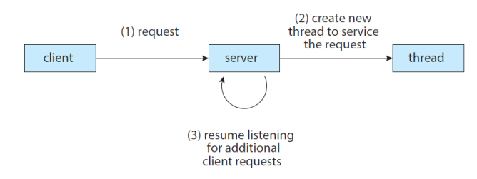 이러한 작업은 사실 별개의 프로세스를 만들어도 해결되는 부분입니다. 클라이언트의 요청만을 받는 프로세스를 만들고, 요청이 들어오는 경우 새로운 프로세스를 만들어 요청을 처리할 것을 위임하면 됩니다. 하지만 이러한 상황에서 쓰레드는 프로세스보다 더 많은 장점을 제공합니다.