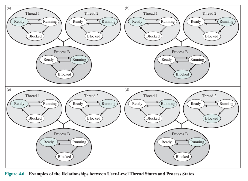쓰레드가 CPU를 점유하는 동작은 프로세스가 CPU를 점유하는 동작과 거의 유사하지만 (TCB에도 PCB와 동일하게 State가 존재하며 이러한 쓰레드 메타데이터를 통해 프로세서를 순차적으로 점유하게 됩니다), 프로세스 전환에서는 PCB의 정보를 활용하고 쓰레드의 전환에서는 TCB의 정보를 활용하는데에서 차이가 있습니다. 또한 User Level Thread의 경우 별도의 OS의 도움 없이 쓰레드를 전환하기도 하는데, 이는 나중에 살펴보도록 하겠습니다.