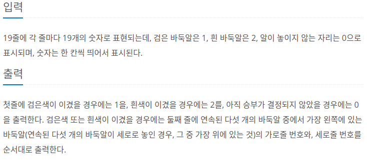 //오목 발견시 해당 색(1,2) 를 출력하고 result에 각 좌표를 저장후 true 반환